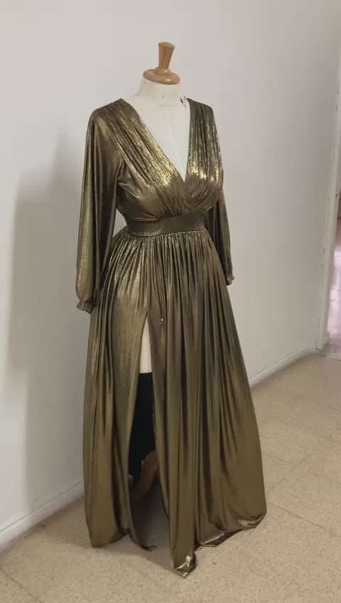 Women Plus Size Gold Metallic Fit & Flare Maxi Dress